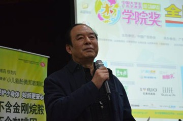 图:山西大学文学院广告系主任 韩志强教授精彩主持,他幽默的串场,精彩的点评,严谨的控场都获得嘉宾和师生的赞誉。